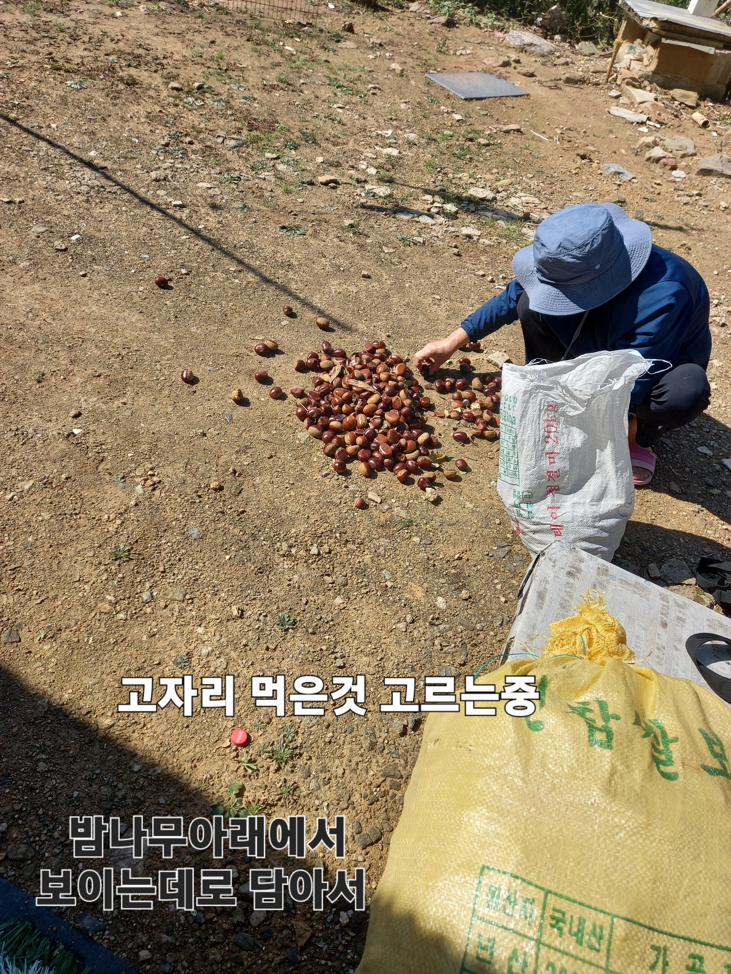 고구마 소시랑으로 캐왔어요. 밤도 따오고.