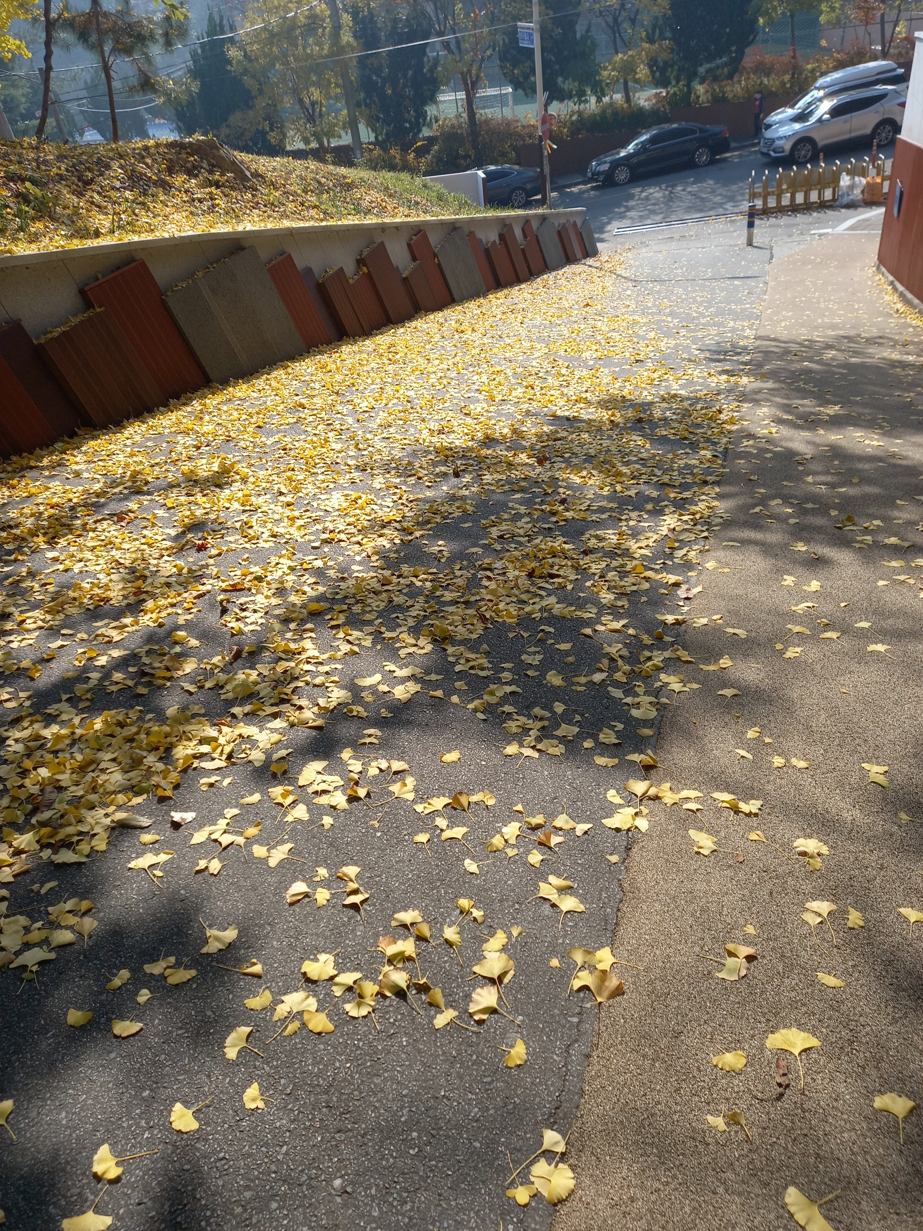 동내 등산로길 낙엽이 떨어저 항아리 크기만한 왕벌집.